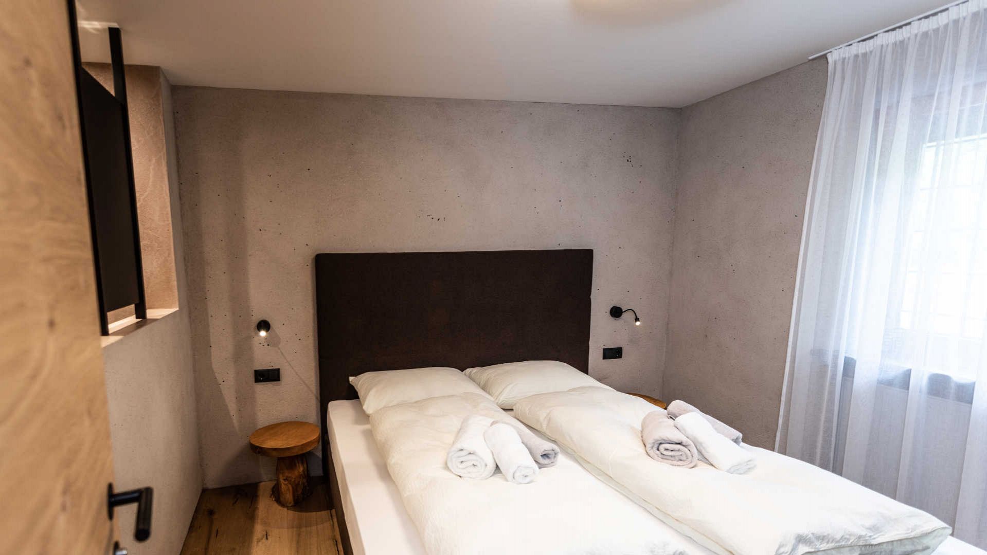 Die gemütliche Wohnung am Pool verfügt über ein Wohn-Schlafzimmer mit Doppelbett und TV, ein Doppelbettzimmer mit Bad und TV, eine kleine Küche, ein Bad mit Dusche und WC, eine große Sonnenterrasse mit Sitzecke (10 qm) Richtung Liegewiese und Pool.